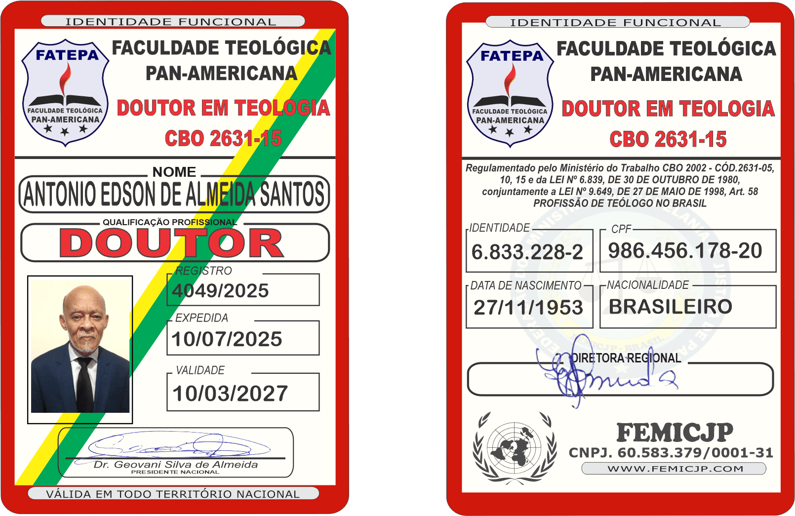 Diploma Nacional e Internacional de Doutorado em Teologia